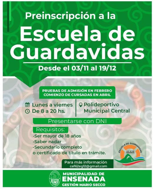 La Municipalidad de Ensenada informó la apertura del período de preinscripción para la Escuela de Guardavidas, una de las pocas instituciones públicas del país dedicadas a la formación profesional en salvamento acuático.