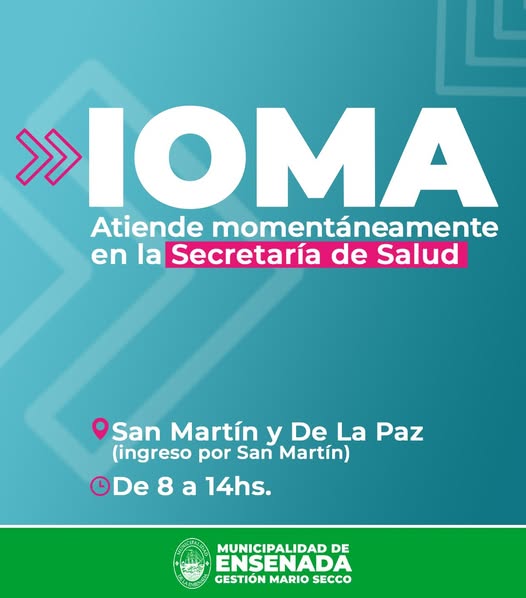 La delegación de IOMA en Ensenada informa que, de manera momentánea, está atendiendo al público en la sede de la Secretaría de Salud, ubicada en la intersección de las calles San Martín y De La Paz.
