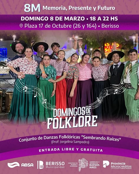 En el marco de las actividades por el Día Internacional de la Mujer, el municipio de Berisso realizará una nueva edición del ciclo cultural “Domingos de Folklore”, una propuesta que busca promover la música popular y el talento local.
