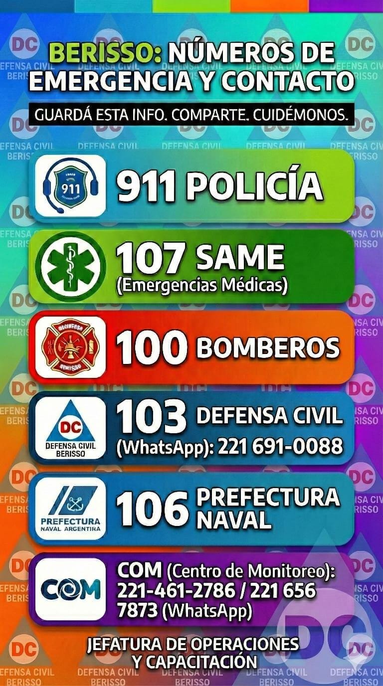 Con el objetivo de fortalecer la prevención y garantizar una respuesta rápida ante situaciones críticas, se difundió en Berisso el listado actualizado de números de emergencia y contacto de los distintos servicios esenciales que operan en la ciudad.