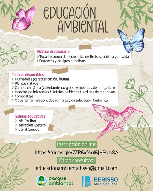 Las inscripciones se realizan a través de la cuenta @berisso.sustentable, mientras que las consultas pueden enviarse al correo educacionambientalbsso@gmail.com. Desde el Municipio destacaron que estas acciones buscan construir conciencia ambiental colectiva y consolidar una ciudad más sustentable, con participación activa de la comunidad educativa.