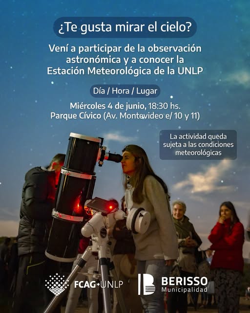La cita es el miércoles 4 de junio a las 18:30 hs en el Parque Cívico (Av. Montevideo entre 10 y 11), donde además los asistentes podrán conocer la Estación Meteorológica de la UNLP y participar de una experiencia educativa y científica única.
