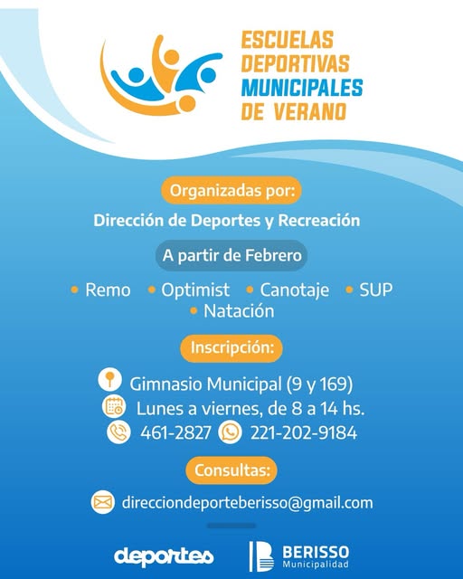 El Municipio de Berisso, a través de la Dirección de Deportes y Recreación y en articulación con Berisso Deportes, anunció el inicio de las Escuelas Deportivas Municipales de Verano, una propuesta destinada a promover la actividad física y el disfrute al aire libre durante la temporada estival.