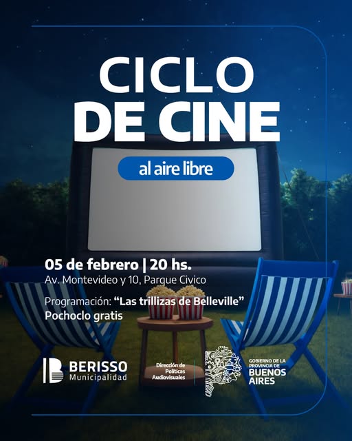 El Municipio de Berisso invita a la comunidad a disfrutar del verano con una propuesta cultural para toda la familia: un ciclo de cine al aire libre que se desarrollará durante todos los jueves de febrero en el Parque Cívico.