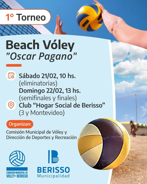 La Municipio de Berisso, a través de Berisso Deportes, invita a la comunidad a participar del 1° Torneo de Beach Vóley “Oscar Pagano”, una propuesta deportiva que busca promover la actividad física y fortalecer los espacios de encuentro en la ciudad.