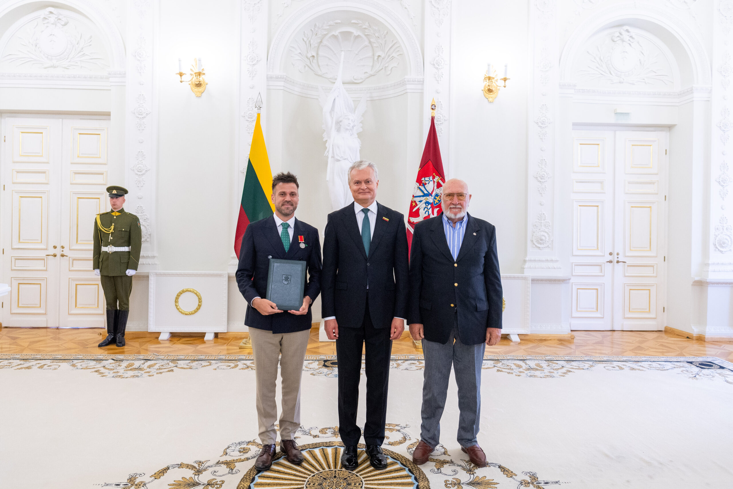 La ceremonia se realizó en la Presidencia de Lituania, el pasado 6 de julio, en conmemoración del Día del Estado Lituano, donde fueron reconocidos distintas personalidades vinculadas a Lituania, desde lo cultural, científico, militar, artístico, entre otras especialidades. Kalvelis fue acompañado durante el acto por el dirigente de la Sociedad Lituana “Nemunas”, Alfredo Dulke.