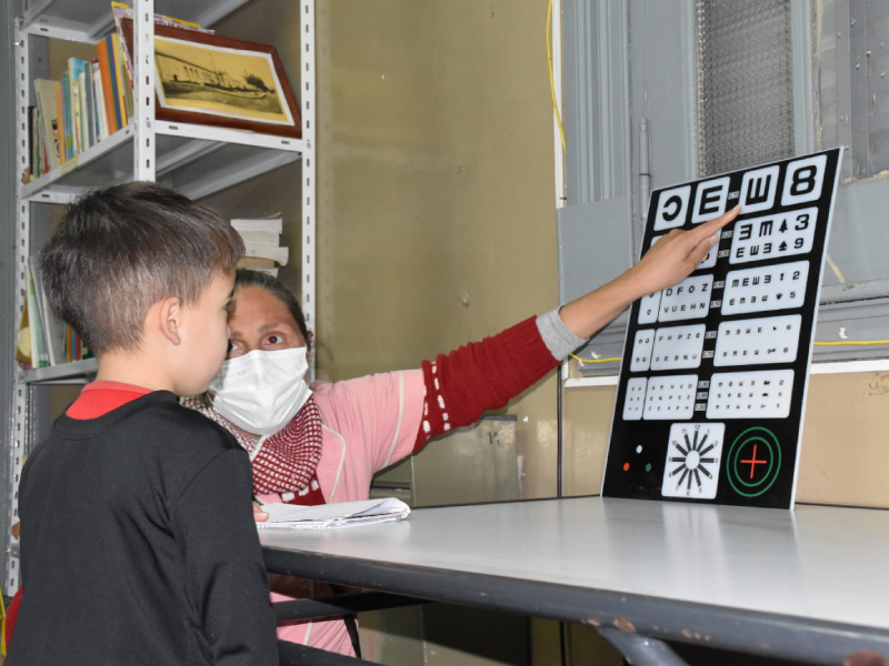 Los profesionales sanitarios del Ministerio de Salud bonaerense realizaron el examen de agudeza visual para detectar a los niños y las niñas con disminución visual. Luego, se desarrolló el examen de valoración en las unidades sanitarias móviles de Oftalmología que consiste en fondo de ojo, evaluación con lámparas de hendidura y autorefractometría.