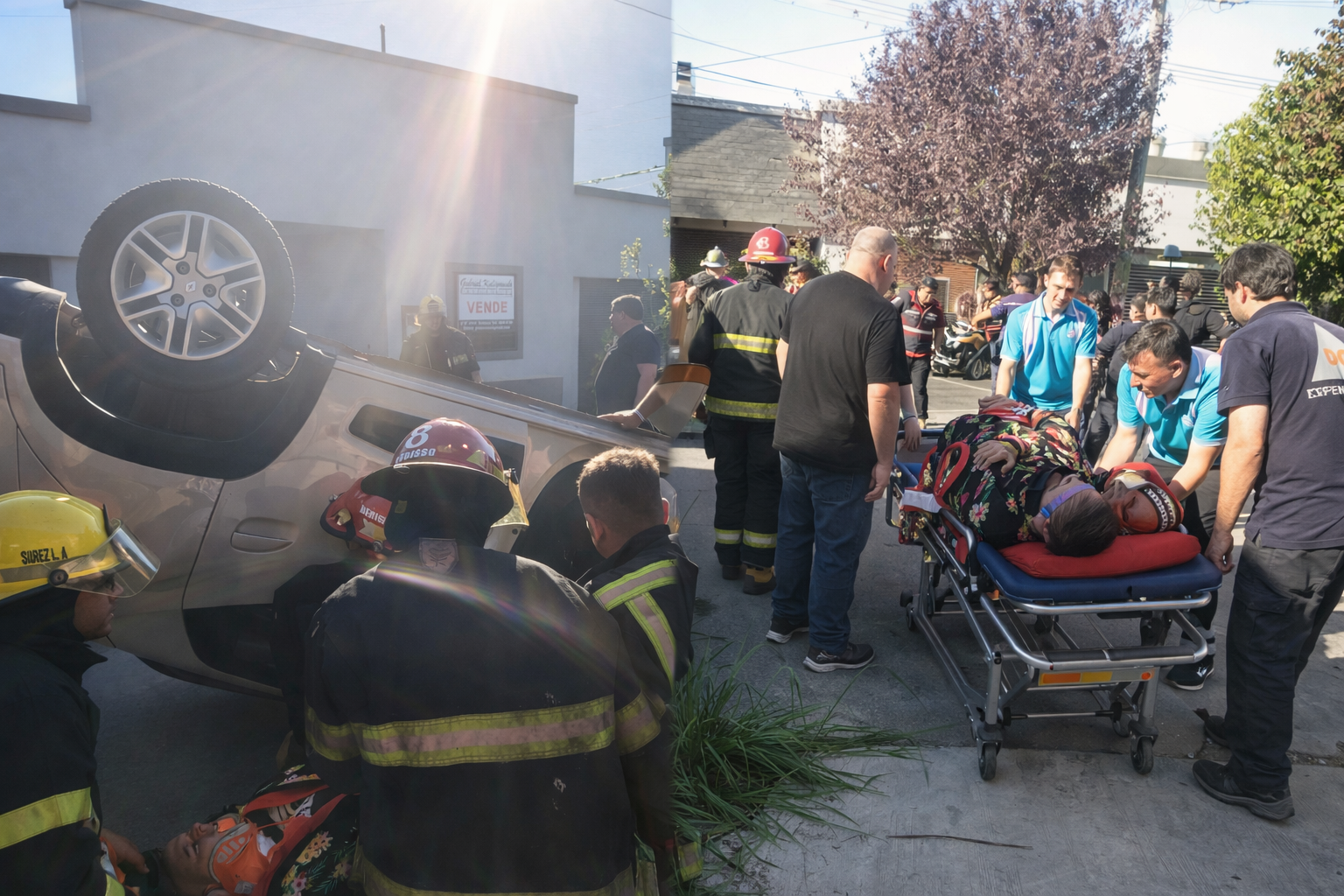 De acuerdo a las primeras informaciones, ambos rodados circulaban por la misma calle cuando el Renault Kwid impactó contra la parte trasera de un Renault Clio, lo que generó que el primer vehículo volcara y quedara invertido sobre la calzada.