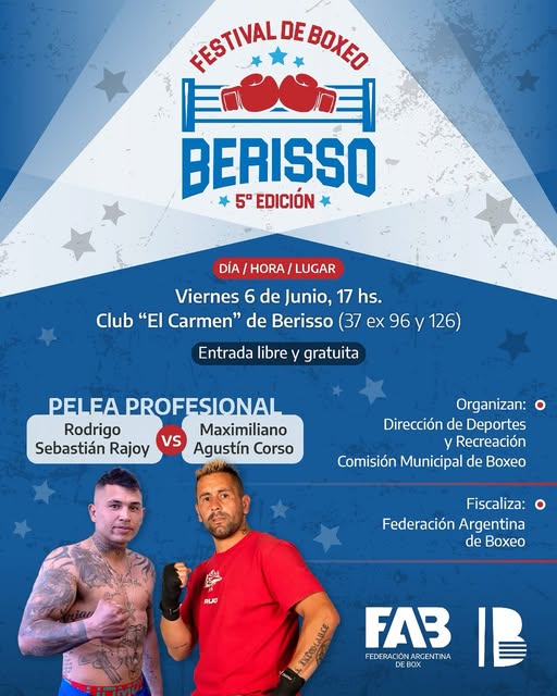 La pasión por el boxeo se renueva en Berisso con una nueva edición del tradicional festival organizado por la Dirección de Deportes y Recreación junto a la Comisión Municipal de Boxeo. La cita será el viernes 6 de junio a partir de las 17 horas en el Club “El Carmen” (37 ex 96 y 126), con entrada libre y gratuita para toda la comunidad.
