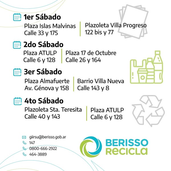 La propuesta invita a acercarse a los puntos verdes más cercanos con residuos reciclables limpios y secos, tales como plásticos, vidrios, cartón, papel y latas, contribuyendo así al cuidado del ambiente y a una gestión más responsable de los desechos urbanos.