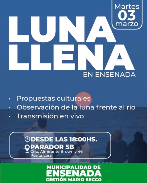 Según informaron desde Prensa Ensenada junto a las áreas de Cultura, el fenómeno podrá observarse desde las 18:00 horas, mientras que su momento central será a las 19:35, cuando el satélite alcance su punto más destacado.