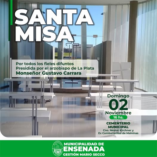 Este domingo 2 de noviembre a las 16 horas, se celebrará una santa misa en memoria de todos los difuntos en el Cementerio Municipal de Ensenada.