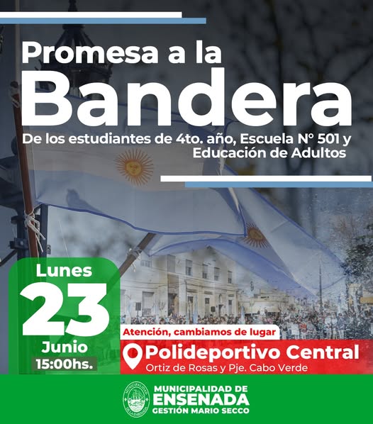 La Municipalidad de Ensenada informó que, debido a las condiciones climáticas, el acto de Promesa de Lealtad a la Bandera previsto para hoy cambiará de lugar.