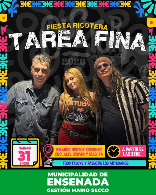 El festival Cultura en el Río volverá a ser escenario de una noche a puro rock con la realización de una nueva “Fiesta Ricotera” en Ensenada. El evento tendrá lugar el sábado 31 de enero desde las 21 horas en el Mirador Néstor Kirchner, ubicado en Diagonal 74 y Camino Costanero.