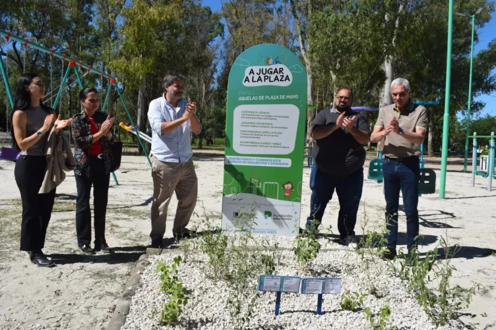 El espacio incorpora una serie de juegos infantiles, módulos aeróbicos donados por la Fundación Banco Provincia, bancos y mesas, además de un sistema de iluminación integral, pensado tanto para la seguridad como para el disfrute en horario nocturno.