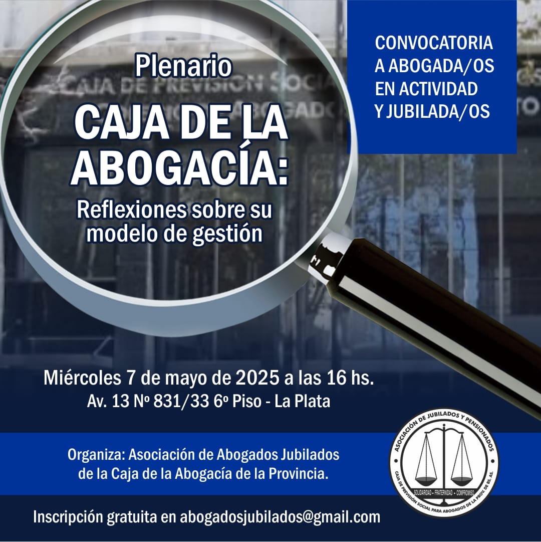 En el marco del 51º aniversario de la Asociación de Abogados Jubilados de la Caja de la Abogacía de la Provincia de Buenos Aires, se convoca a abogadas y abogados, tanto en actividad como jubilados y pensionados, a participar del plenario abierto titulado “Caja de la Abogacía: Reflexiones sobre su modelo de gestión”.