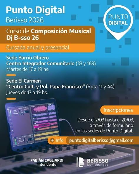 La Municipalidad de Berisso lanzó la convocatoria 2026 de Punto Digital Berisso, con dos nuevas propuestas de formación gratuita y presencial destinadas a jóvenes y adultos que deseen incorporar herramientas para el presente y el futuro.