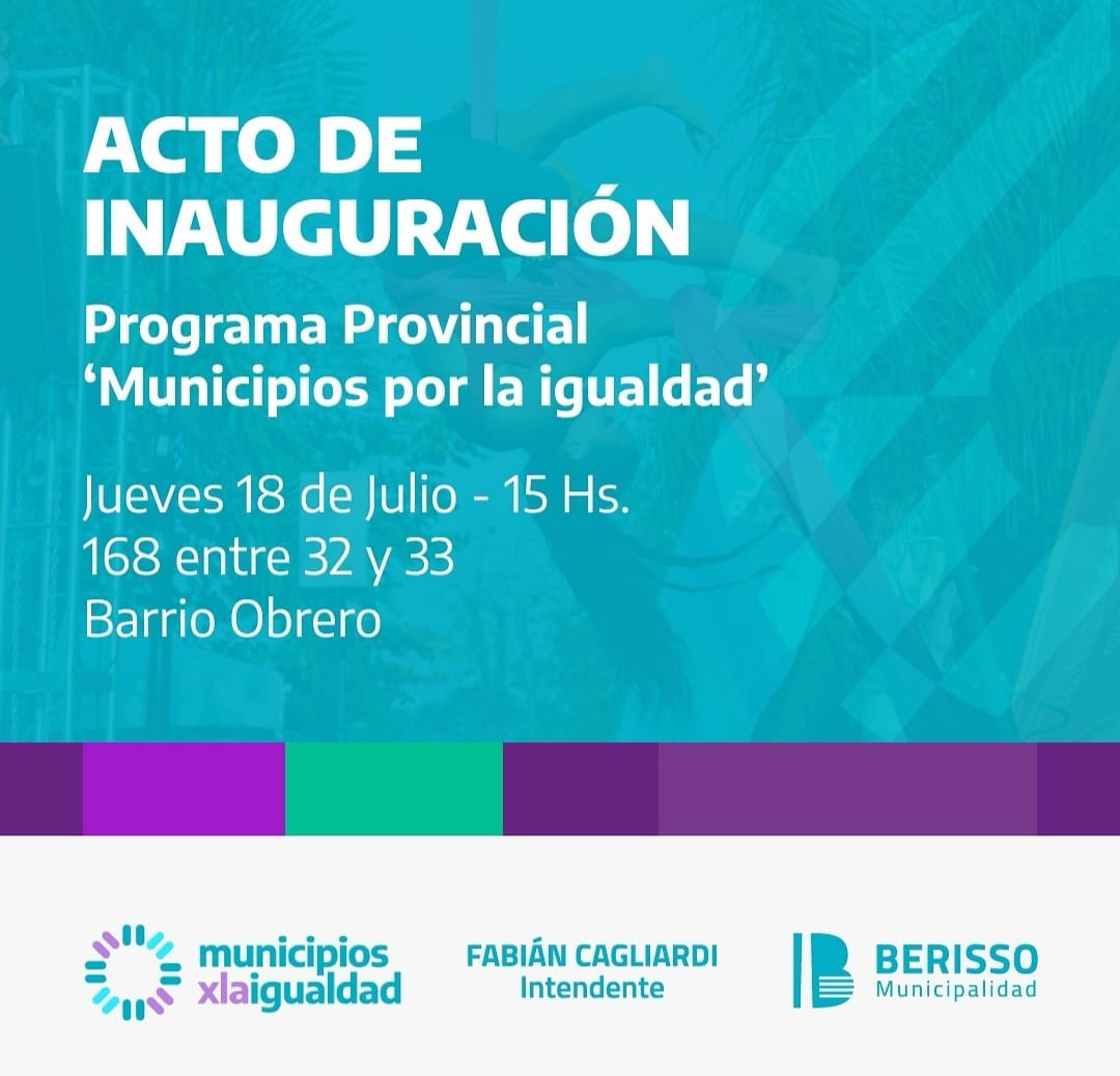 Desde las 15hs en 168 e/32 y 33 se realizará el acto de inauguración del nuevo espacio público que se llevará adelante en el marco del Programa provincial Municipios por la Igualdad del Ministerio de Géneros y Diversidad de la Provincia de Buenos Aires.