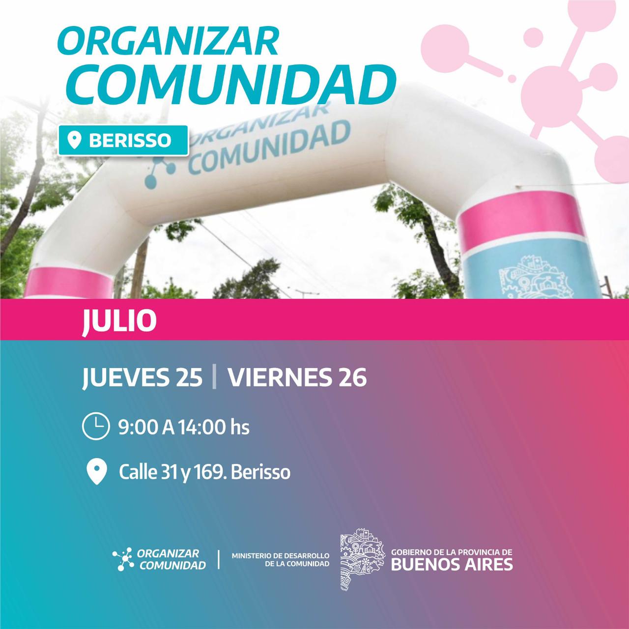 Los días 25 y 26 de julio se llevará a cabo la jornada Organizar Comunidad en nuestra ciudad, estará ubicada en 31 y 169 en los horarios de 09 a 14hs.