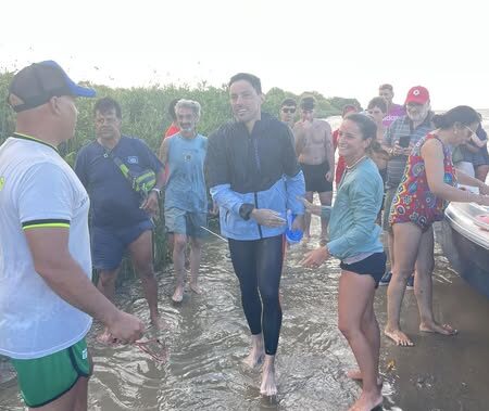 La navegación comenzó en las últimas horas de la madrugada del viernes para estar llegando un minuto después de las 17 horas de este viernes, luego de 12 horas nadando. Tanto Ariel como Ignacio, compañeros durante mucho tiempo de la natación de piletas, desde el 2019 estuvieron trabajando y analizando estrategicamente y preparandose mentalmente para esta aventura que finalizó con éxito.