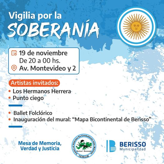El próximo martes 19 de noviembre, la comunidad se reunirá en una emotiva vigilia en honor a la soberanía argentina. El encuentro tendrá lugar desde las 20:00 hasta la medianoche, en la intersección de Av. Montevideo y calle 2.